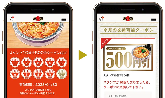 スタンプ10個で税込総額から500円引きクーポンGET!!