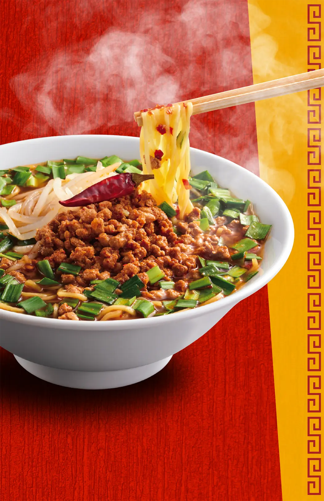 独自ブレンドの唐辛子とにんにくが効いた醤油スープに、旨みある特製台湾ミンチ、シャキシャキもやしと香り高いニラが食欲をそそる一杯。