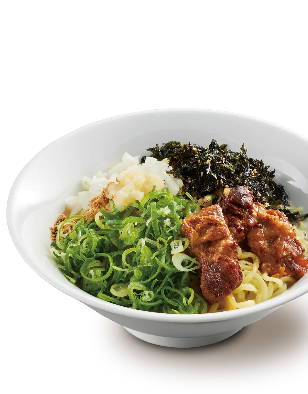 もちもちの中太麺に、丸源自慢の熟成醤油と、甘み・旨みの強い油が絡み合い、素材の味を 存分に堪能できる一杯に仕上げました。 今年より専用トッピングも追加し、卓上の調味料も併せて自分好みの味わいを楽しめる商品です。
