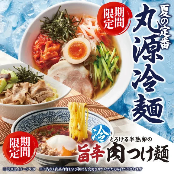 2025年7月3日(木)より、期間限定メニュー「丸源冷麺」と「とろける半熟卵の旨辛肉つけ麺」を発売いたします。