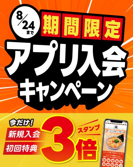 2025年7月28日(月)より、丸源ラーメンの公式アプリ「アプリスタンプ3倍キャンペーン」を実施いたします。