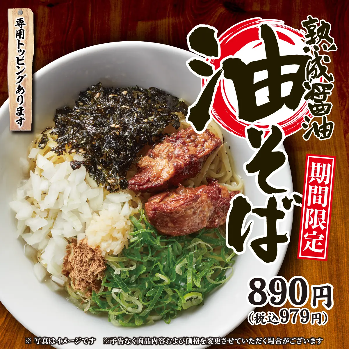 昨年大好評いただいた、「熟成醤油 油そば」を3月26日より全店で販売致します!